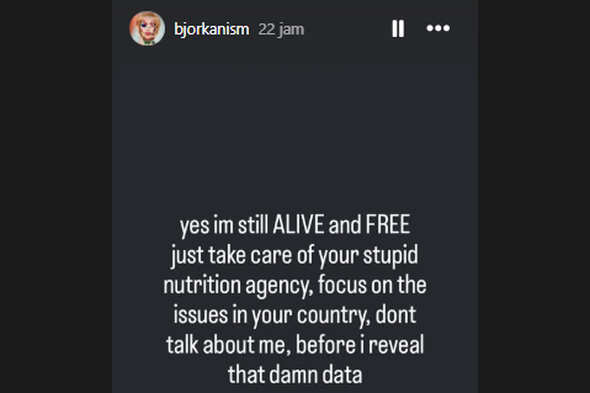 Namun, tak lama setelah kabar penangkapan itu beredar, akun asli Bjorka dengan nama @bjorkanism kembali aktif di media sosial Instagram. Dalam unggahan terbarunya, Bjorka menegaskan bahwa dirinya masih bebas dan tidak pernah tertangkap.